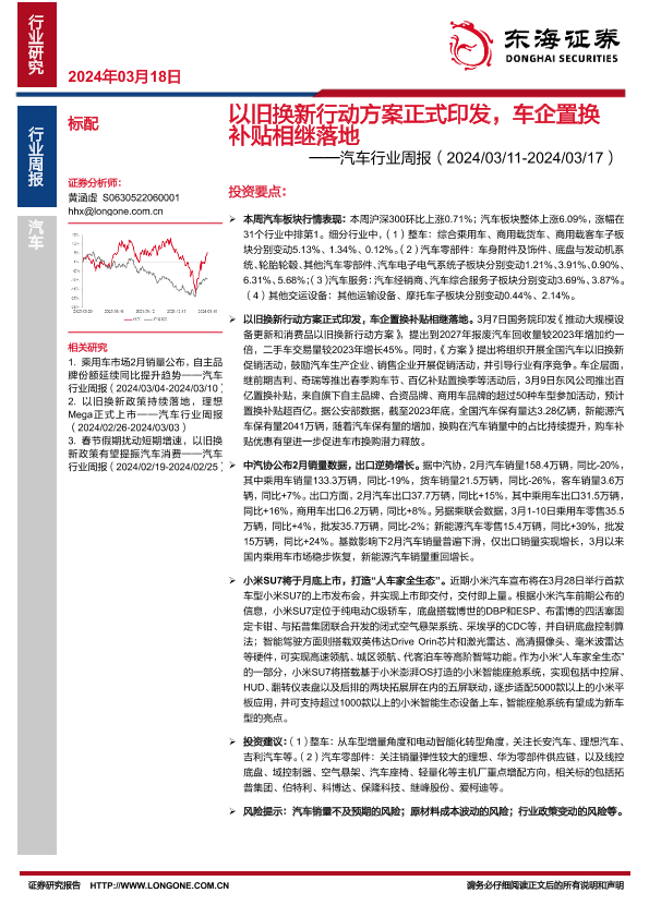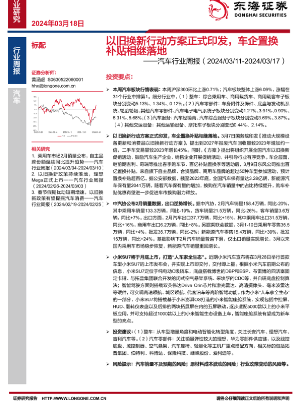 【东海证券】【20240318】以旧换新行动方案正式印发,车企置换补贴相继落地-13页