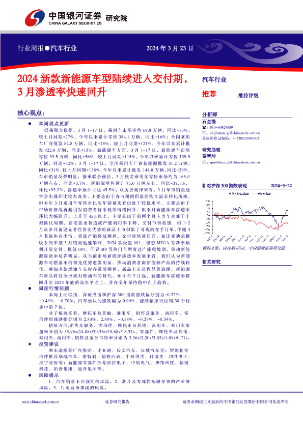 【银河证券】【20240323】2024新款新能源车型陆续进入交付期,3月渗透率快速回升-11页