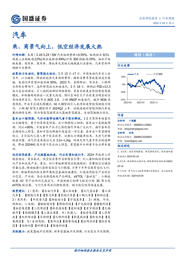 【国盛证券】【20240324】20240324-国盛证券-汽车行业周报:乘、商景气向上,低空经济发展火热-21页