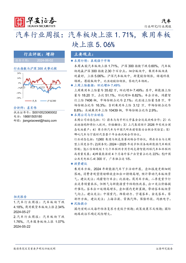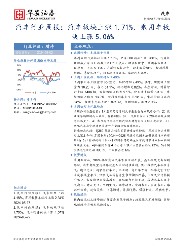 【华安证券】【20240602】汽车行业周报:汽车板块上涨1.71%,乘用车板块上涨5.06%-12页
