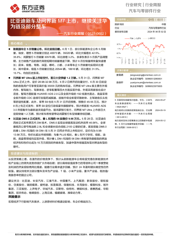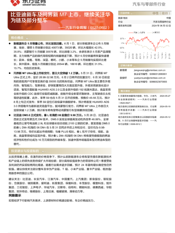 【东方证券】【20240602】20240602-东方证券-汽车行业周报:比亚迪新车及问界新M7上市,继续关注华为链及部分整车-17页