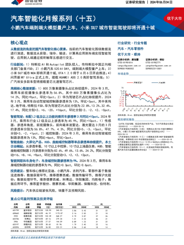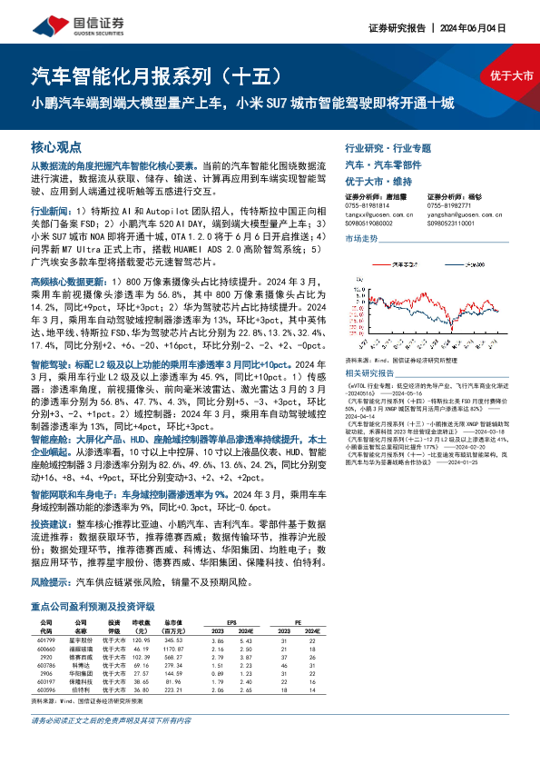 【国信证券】【20240604】汽车智能化月报系列(十五):小鹏汽车端到端大模型量产上车,小米SU7城市智能驾驶即将开通十城-72页