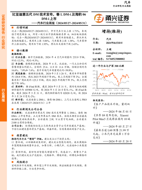 【甬兴证券】【20240603】20240603-甬兴证券-汽车行业周报:比亚迪第五代DM技术发布,秦LDM-i及海豹06DM-i上市-13页