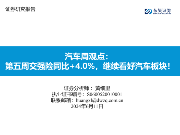 【东吴证券】【20240611】汽车周观点:第五周交强险同比+4.0%,继续看好汽车板块!-28页
