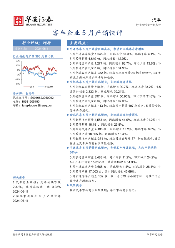 【华安证券】【20240611】客车企业5月产销快评-12页