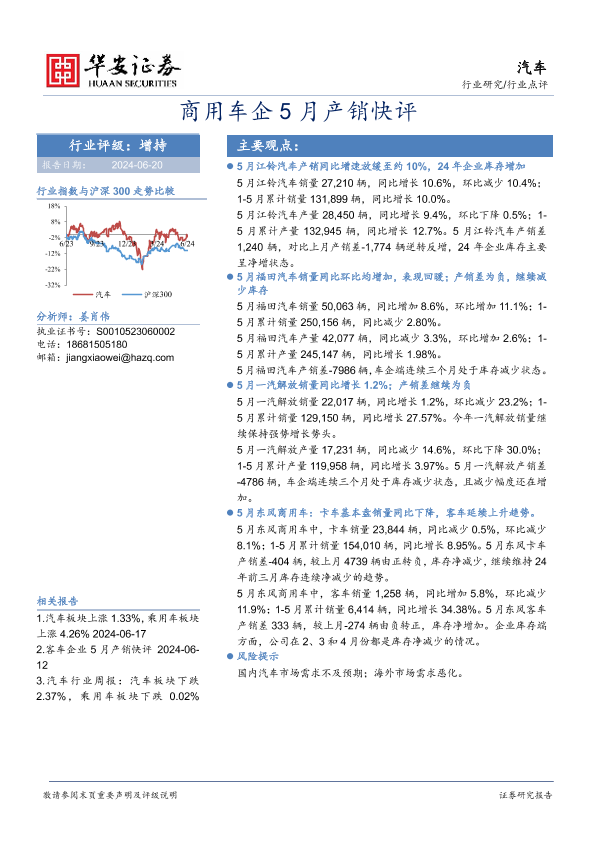 【华安证券】【20240620】商用车企5月产销快评-16页