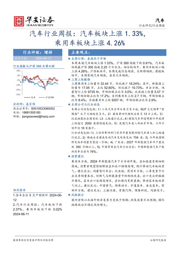 【华安证券】【20240617】汽车行业周报:汽车板块上涨1.33%,乘用车板块上涨4.26%-11页
