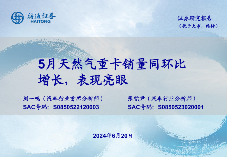 【海通证券】【20240620】5月天然气重卡销量同环比增长,表现亮眼-22页