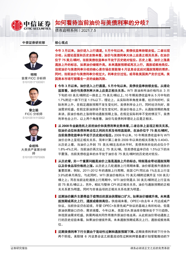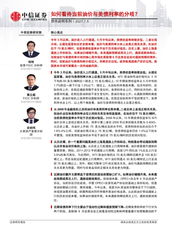 【中信证券】【20210705】债市启明系列:如何看待当前油价与美债利率的分歧?-31页