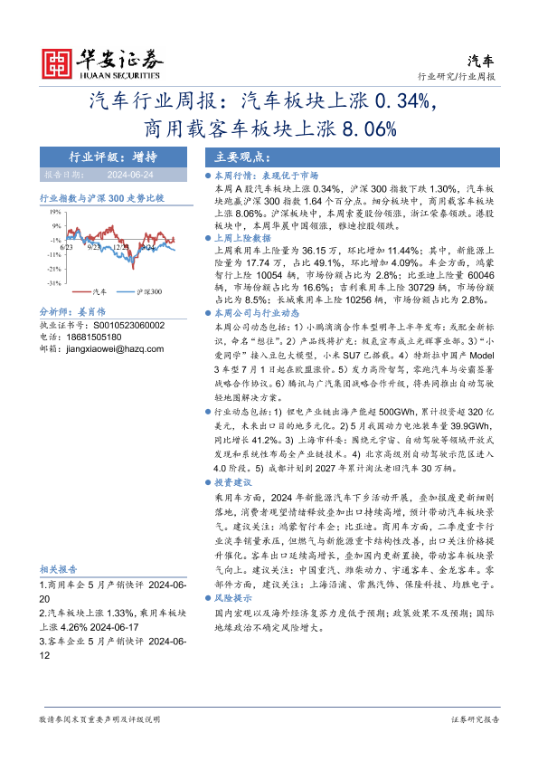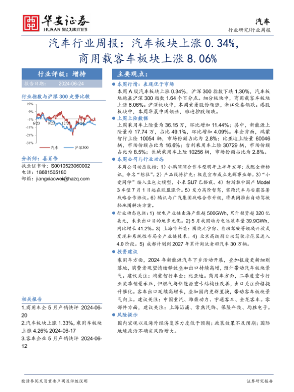 【华安证券】【20240624】汽车行业周报:汽车板块上涨0.34%,商用载客车板块上涨8.06%-11页