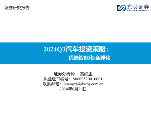 【东吴证券】【20240626】2024Q3汽车投资策略:优选智能化 全球化-48页