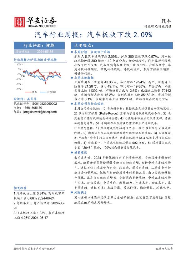 【华安证券】【20240628】汽车行业周报:汽车板块下跌2.09%-12页