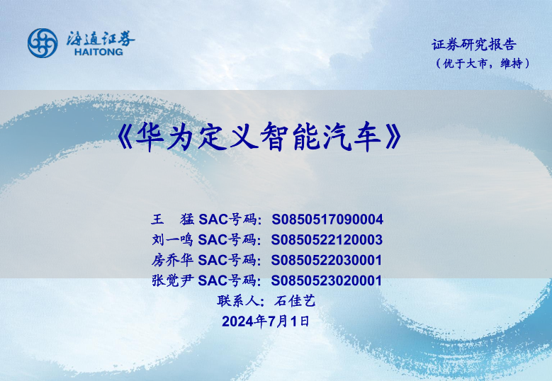 华为 技术创新 智能汽车 汽车行业 证券研究报告