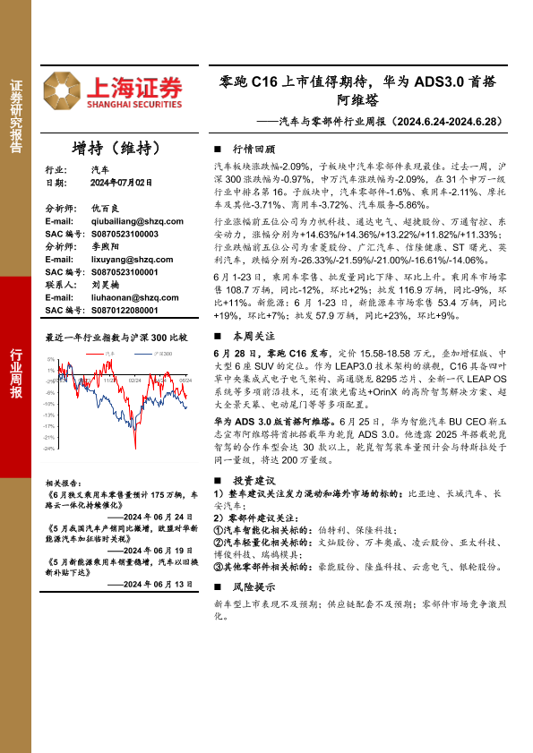 【上海证券】【20240702】20240702-上海证券-汽车与零部件行业周报:零跑C16上市值得期待,华为ADS3.0首搭阿维塔-10页