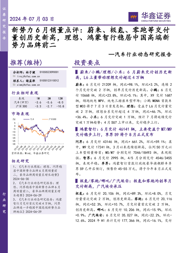 【华鑫证券】【20240703】新势力6月销量点评:蔚来极氪、零跑等交付量创历史新高,理想、鸿蒙智行稳居中国高端新势力品牌前二-14页