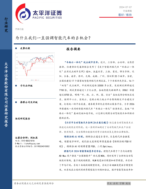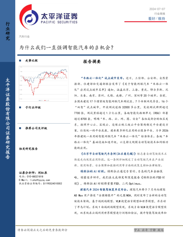 【太平洋证券】【20240707】20240707-太平洋-汽车行业周报:为什么我们一直强调智能汽车的β机会?-19页