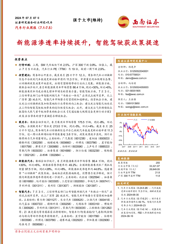 【西南证券】【20240707】汽车行业周报:新能源渗透率持续提升,智能驾驶获政策提速-20页