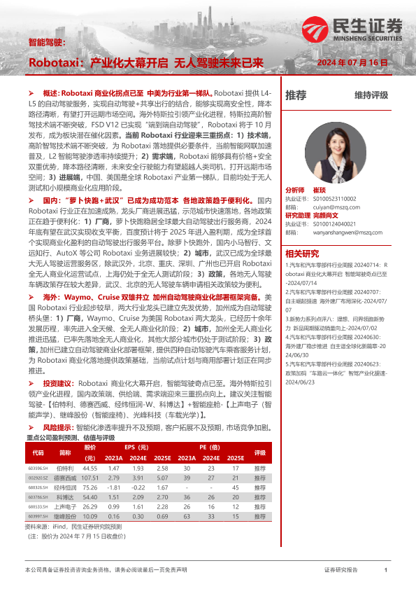 【民生证券】【20240716】智能驾驶:Robotaxi:产业化大幕开启 无人驾驶未来已来-47页