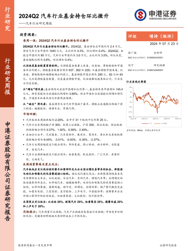 【申港证券】【20240723】2024Q2汽车行业基金持仓环比微升-10页
