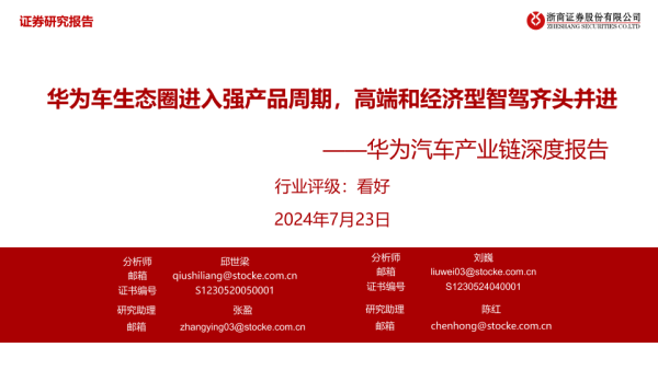 【浙商证券】【20240723】华为汽车产业链深度报告:华为车生态圈进入强产品周期,高端和经济型智驾齐头并进-33页