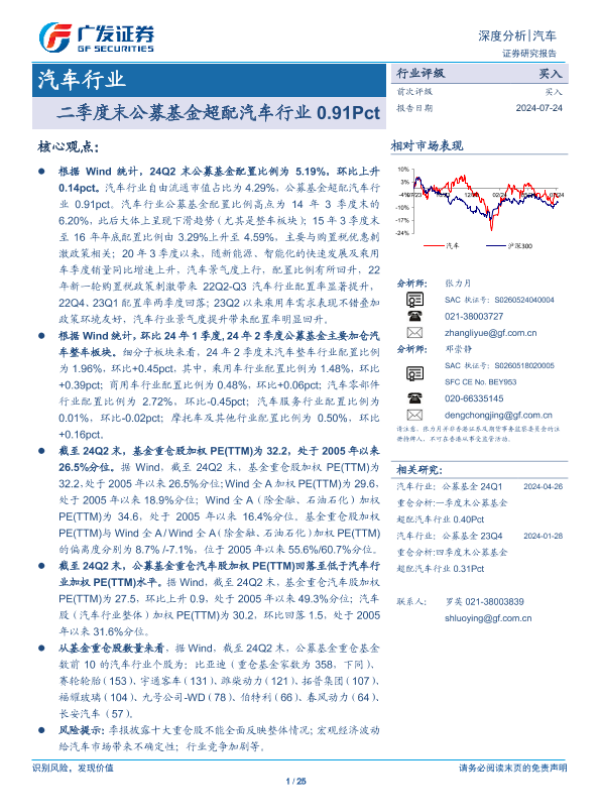 【广发证券】【20240724】二季度末公募基金超配汽车行业0.91Pct-25页
