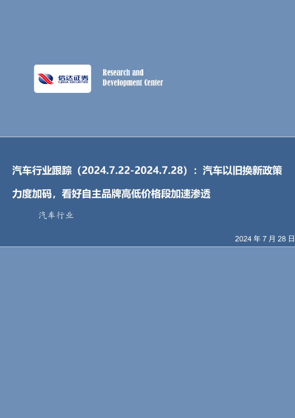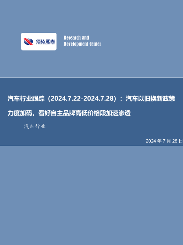 【信达证券】【20240728】汽车行业跟踪:汽车以旧换新政策力度加码,看好自主品牌高低价格段加速渗透-21页