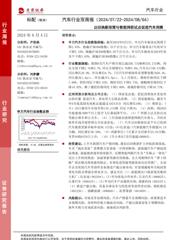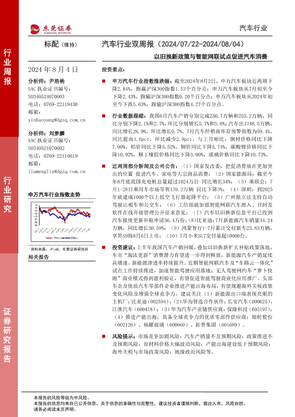 【东莞证券】【20240804】汽车行业双周报:以旧换新政策与智能网联试点促进汽车消费-13页