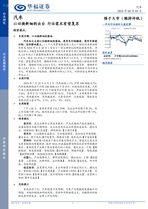 【华福证券】【20240805】20240805-华福证券-汽车行业定期报告:以旧换新细则出台 行业需求有望复苏-13页