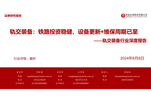 【浙商证券】【20240808】轨交装备:铁路投资稳健,设备更新+维保周期已至-47页
