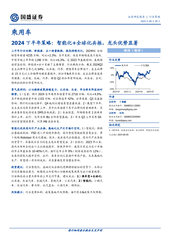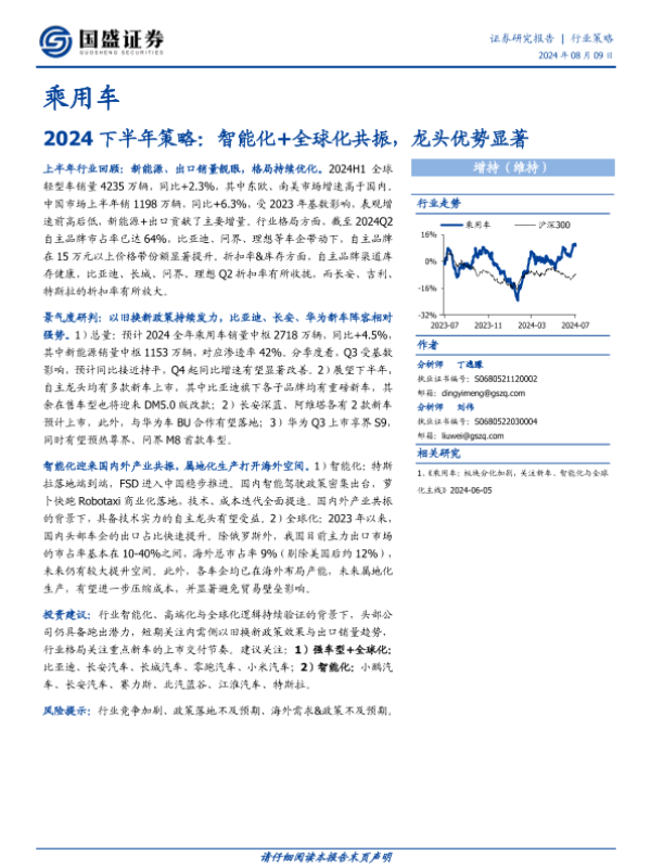 【国盛证券】【20240809】乘用车2024下半年策略:智能化+全球化共振,龙头优势显著-26页