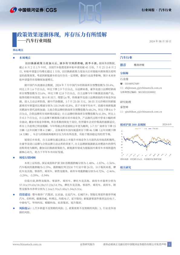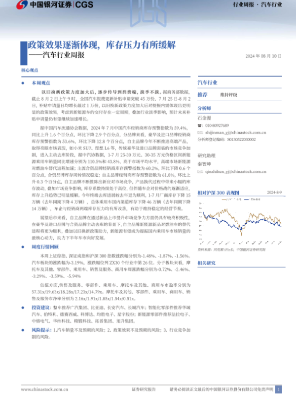 【银河证券】【20240810】20240810-中国银河-汽车行业周报:政策效果逐渐体现,库存压力有所缓解-13页