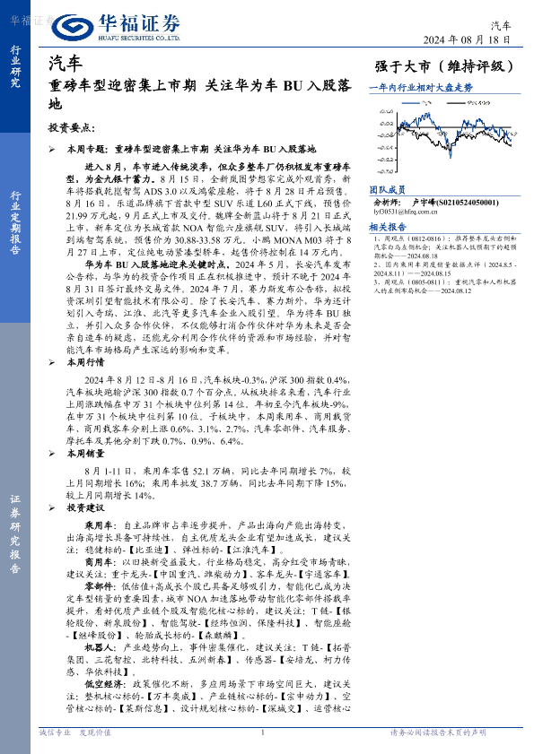 【华福证券】【20240818】汽车:重磅车型迎密集上市期,关注华为车BU入股落地-13页