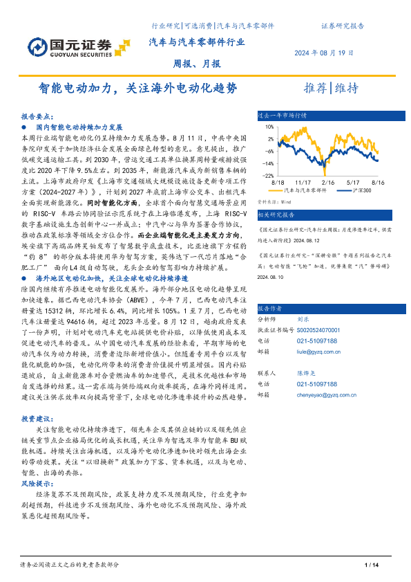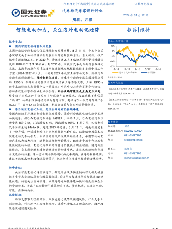 【国元证券】【20240819】汽车与汽车零部件行业周报、月报:智能电动加力,关注海外电动化趋势-14页