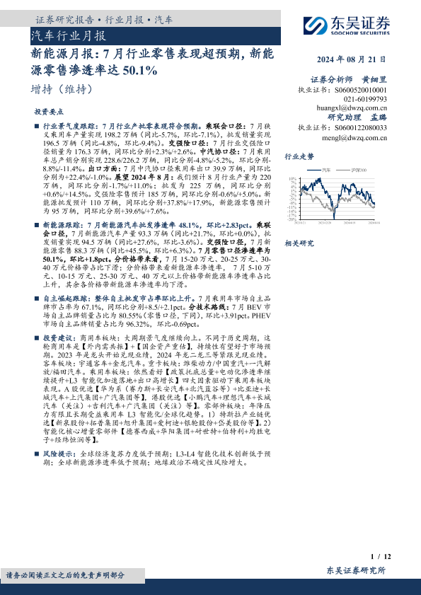 【东吴证券】【20240821】新能源月报:7月行业零售表现超预期,新能源零售渗透率达50.1%-12页