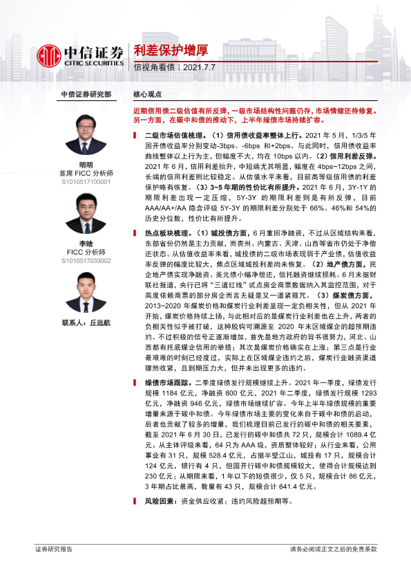【中信证券】【20210707】信视角看债:利差保护增厚-29页