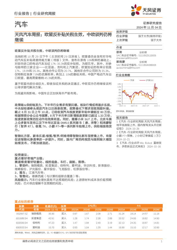 【天风证券】【20241104】汽车行业周报:欧盟反补贴关税生效,中欧谈判仍将继续-12页