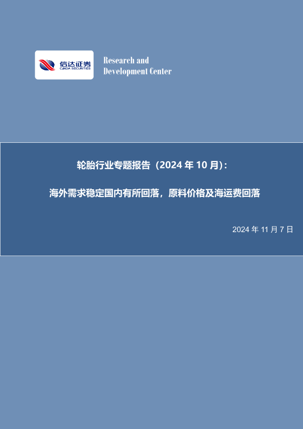 【信达证券】【20241107】轮胎行业专题报告(2024年10月):海外需求稳定国内有所回落,原料价格及海运费回落-23页