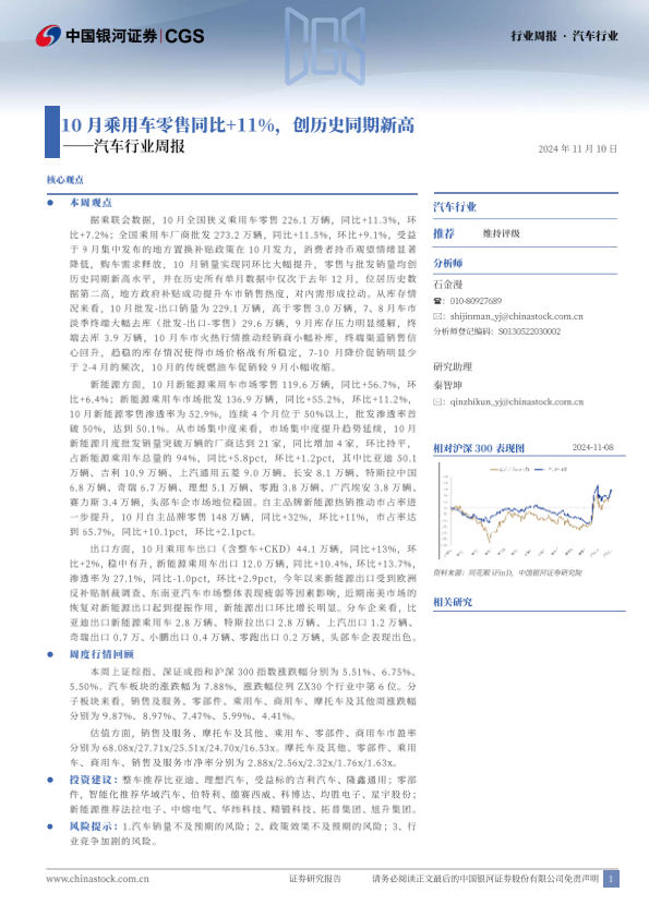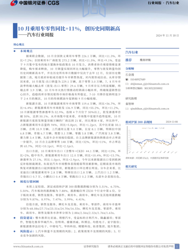 【银河证券】【20241110】20241110-中国银河-汽车行业周报:10月乘用车零售同比+11%,创历史同期新高-14页
