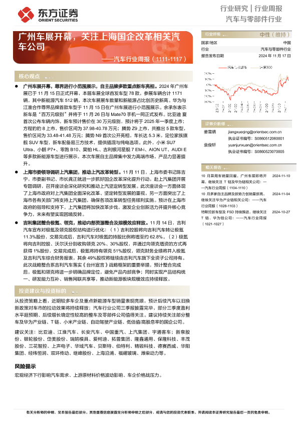 【东方证券】【20241117】20241117-东方证券-汽车行业周报:广州车展开幕,关注上海国企改革相关汽车公司-18页