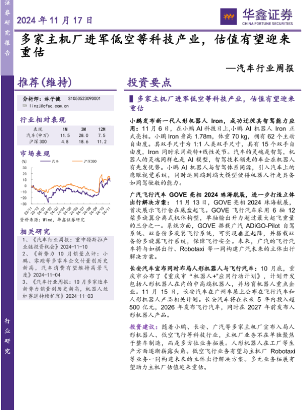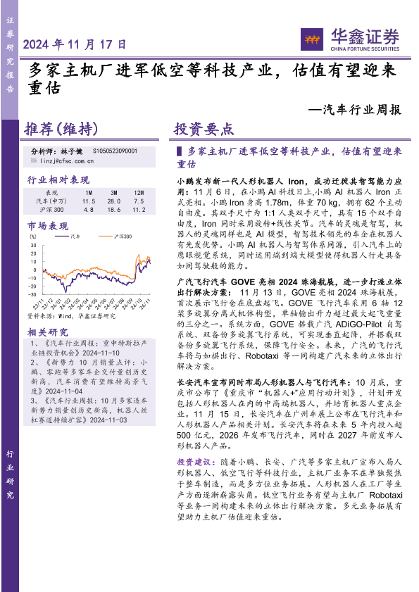 【华鑫证券】【20241117】多家主机厂进军低空等科技产业,估值有望迎来重估-18页
