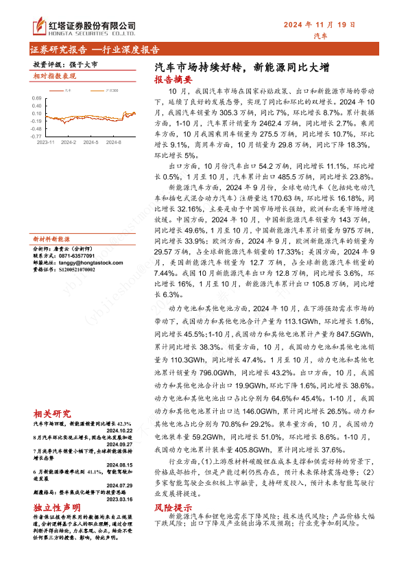 【红塔证券】【20241119】汽车市场持续好转,新能源同比大增-17页