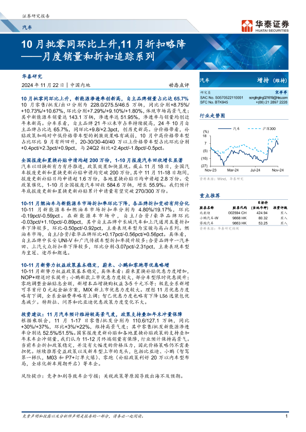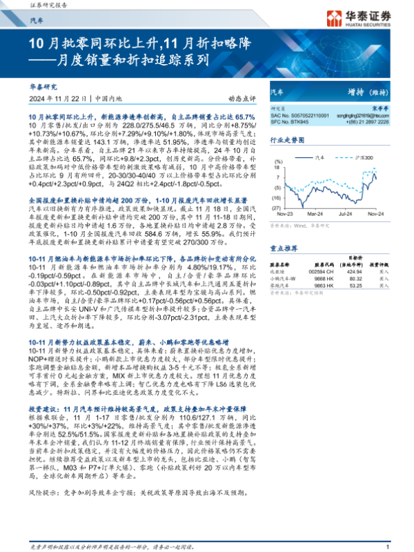 【华泰证券】【20241122】10月批零同环比上升,11月折扣略降 ——月度销量和折扣追踪系列-18页