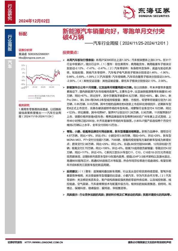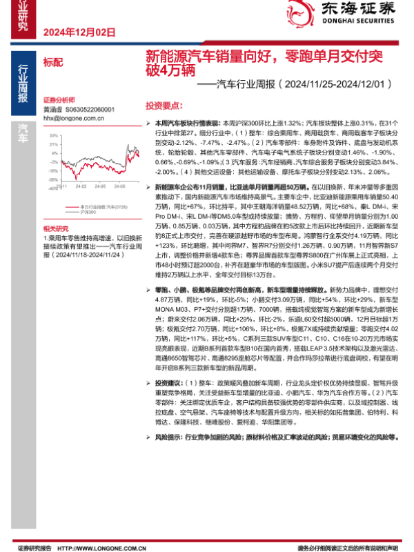 【东海证券】【20241202】新能源汽车销量向好,零跑单月交付突破4万辆-15页