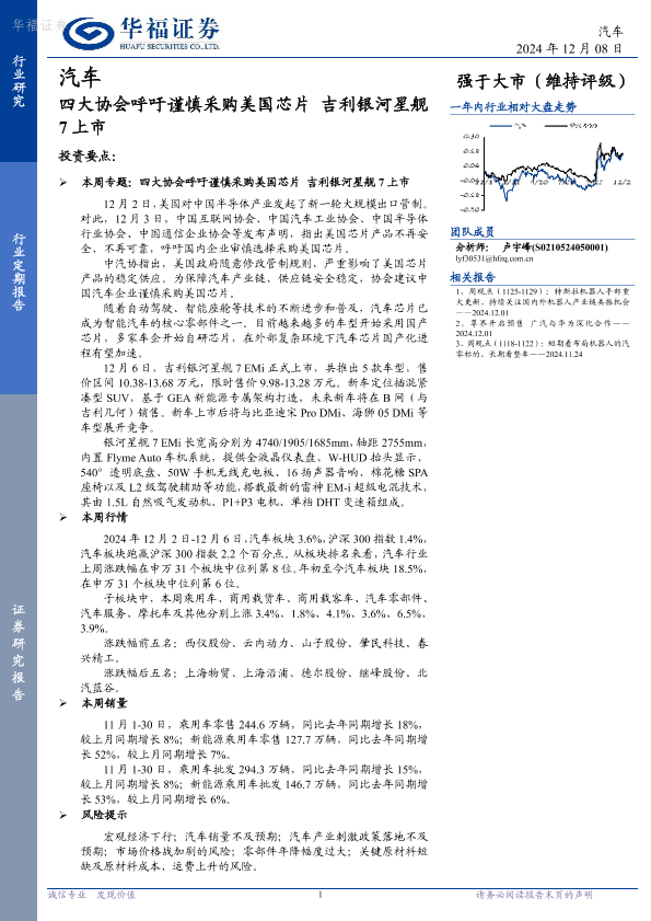 【华福证券】【20241208】四大协会呼吁谨慎采购美国芯片 吉利银河星舰7上市-12页