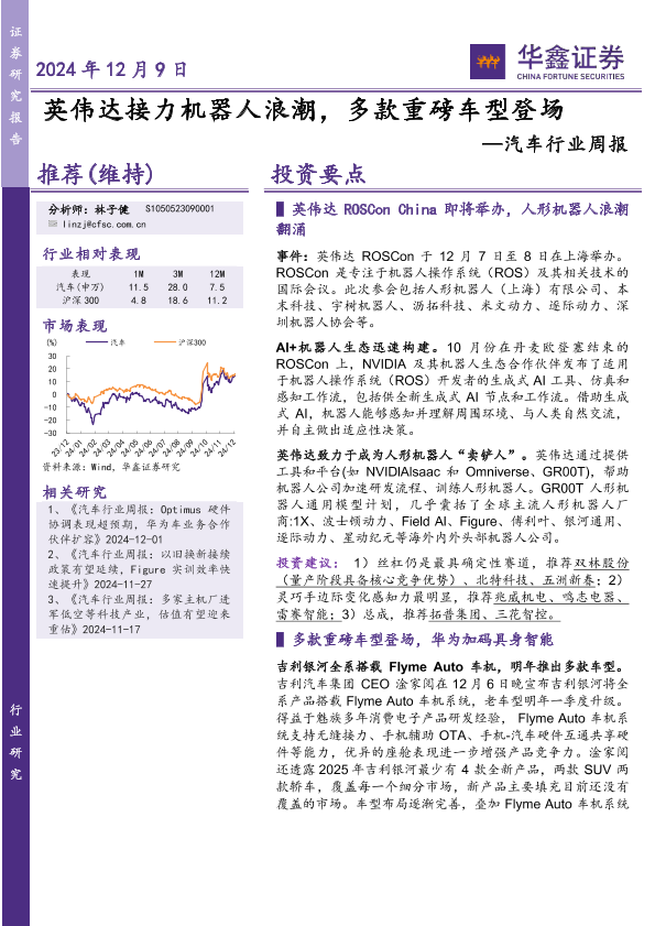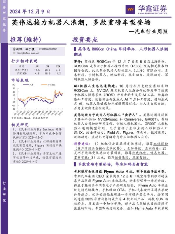 【华鑫证券】【20241209】20241209-华鑫证券-汽车行业周报:英伟达接力机器人浪潮,多款重磅车型登场-18页
