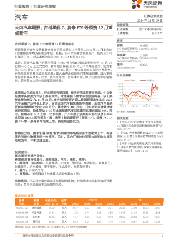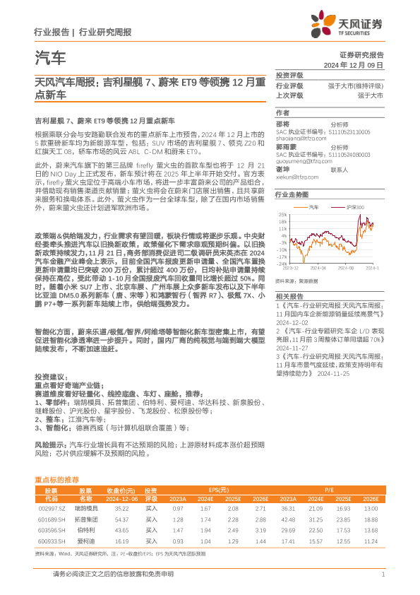 【天风证券】【20241209】20241209-天风证券-汽车行业周报:吉利星舰7、蔚来ET9等领携12月重点新车-15页