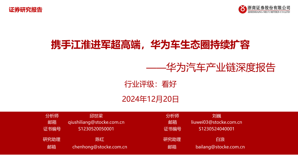 【浙商证券】【20241220】携手江淮进军超高端,华为车生态圈持续扩容——华为汽车产业链深度报告-32页