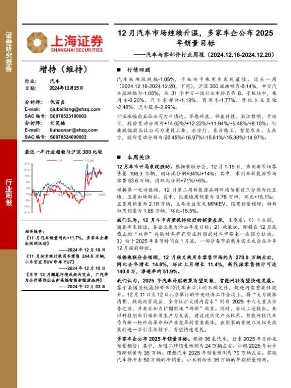 【上海证券】【20241225】12月汽车市场继续升温,多家车企公布2025年销量目标-11页