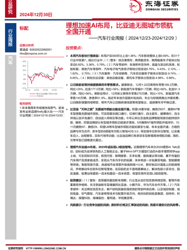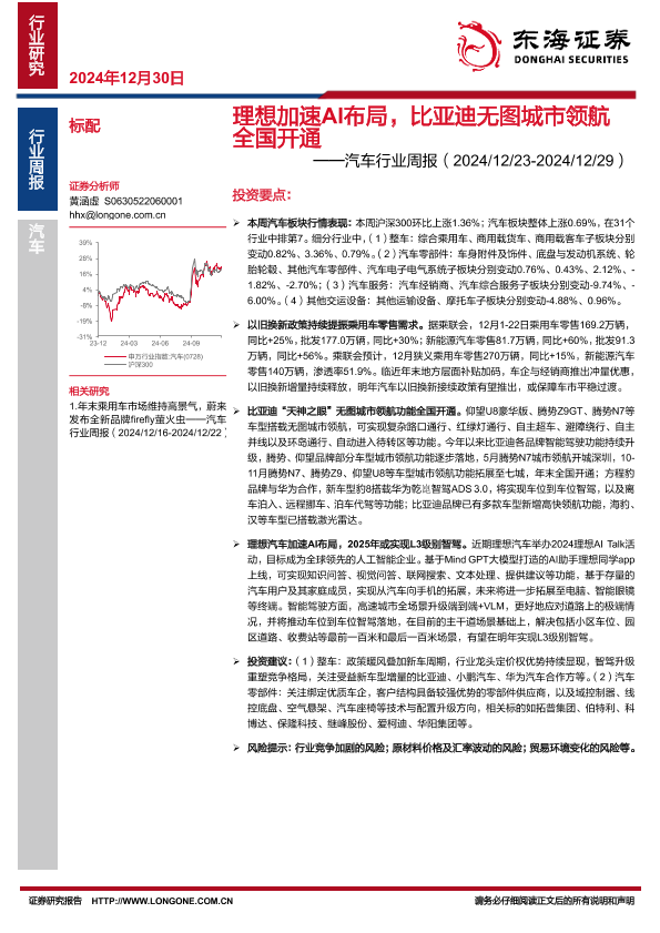 【东海证券】【20241230】理想加速AI布局,比亚迪无图城市领航全国开通-11页