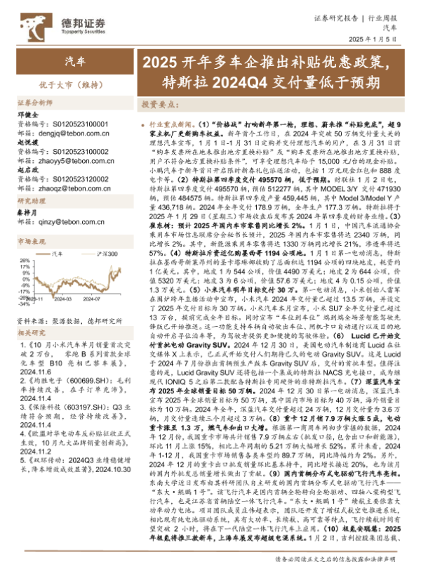 【德邦证券】【20250105】2025开年多车企推出补贴优惠政策,特斯拉2024Q4交付量低于预期-12页